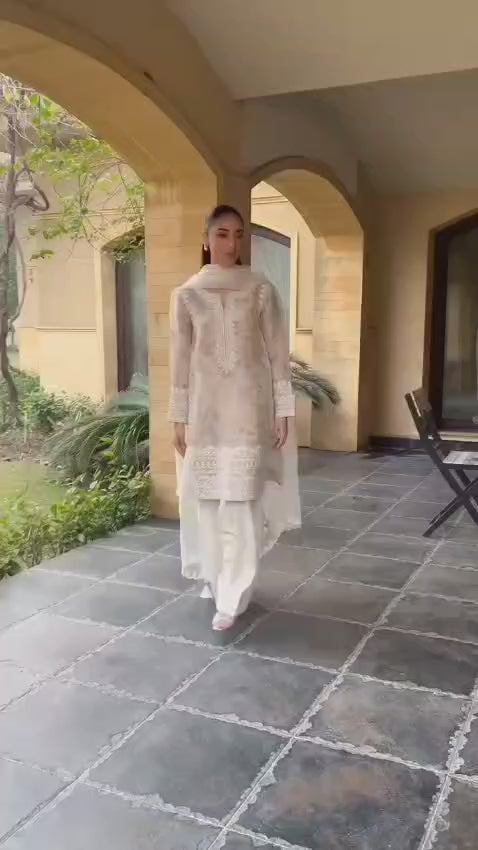 •ORGANZA WITH EMBROIDERY WORK ON BORDER AND LATKAN ON CORNER