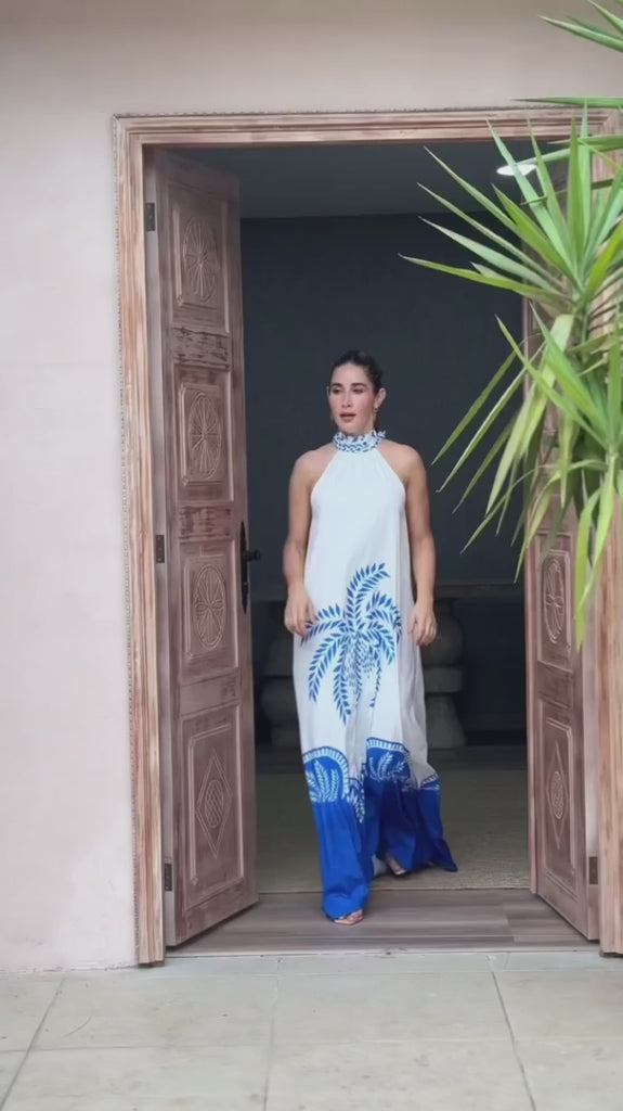 Step into paradise with our Coastal Dream Dress, a perfect blend of elegance and tropical charm. Crafted from luxurious Swiss Silk Satin, this white cut-sleeve dress features a delicate tie neck that offers an effortlessly chic silhouette. The stunning blue palm print brings the essence of coastal beauty to your wardrobe, evoking the tranquil vibes of a beach paradise.
